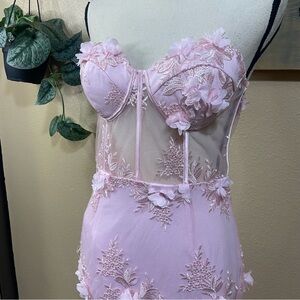 NWOT Lulus Radiant Expectations Pink Embroidered Floral Bustier Maxi Dre…