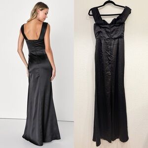 NWOT Lulus Stunning Arrival Black Satin Off-The-Shoulder Maxi Dress