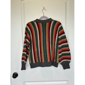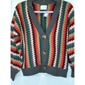 NWOT Lush Green and Red Retro Striped Cardigan Size Small