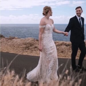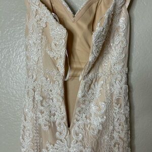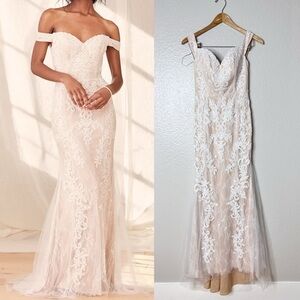 NWOT Luxe Promised Love White Beaded Lace Off-the-Shoulder Maxi Dress