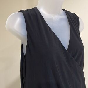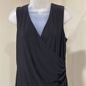 ⭐ Luxe Carmen Marc Valvo little black ruffled dress wrap style bodice flowy lightweight soft stretchy neutral staple must have party funeral interview church wedding date night business meeting school dance spring summer fall winter autumn holiday NWOT new without tag size 14W 14 plus dressy work fancy