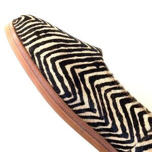 New without tags; Gorgeous black/cream calf hair/leather uppers; leather lining; comfy cushioned leather footbed; smoke/pet-free home.
