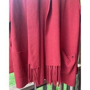 NWOT MAGASCHONI Fall Burnt Orange Kimono Open Front Fringed Cardigan Medium