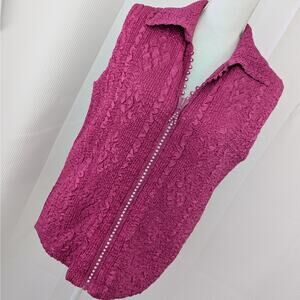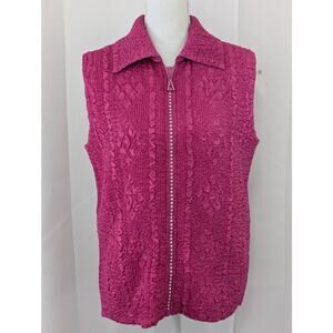 NWOT! MAGIC! FUSCHIA PINK "CRUMPLED" TEXTURE, RHINESTONE ZIPPER VEST! SZ L