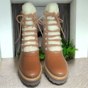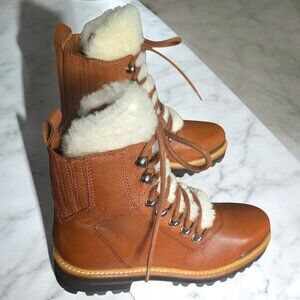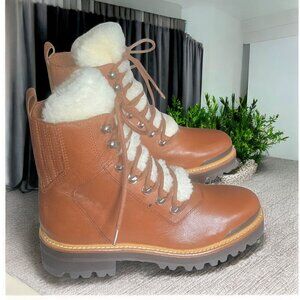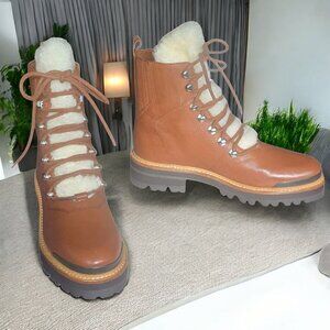 NWOT MARC FISCHER LTD ( 7 ) IZZIE Shearling Lined Leather Work Boots in Dark Tan