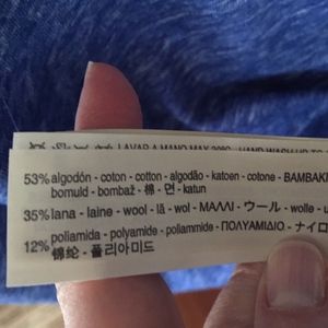 —This shirt is made in Portugal. Hand wash. Fabric is mostly cotton, with a bit of wool and nylon. See pics.
