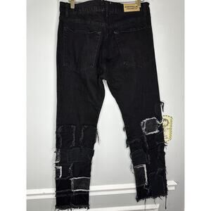 NWOT MEN'S KODY PHILLIPS FOR MNML LA BLACK JEANS RAW EDGE PATCHES SIZE 34 30