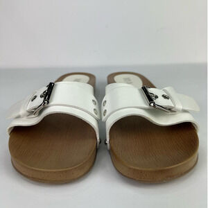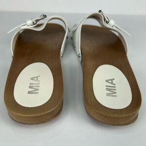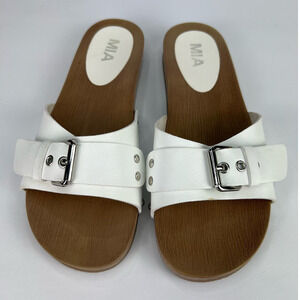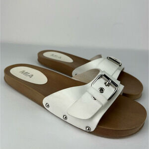 NWOT MIA Thia Bona Buckle CLOG Slide Sandal Size 10 White Wood Look Sole