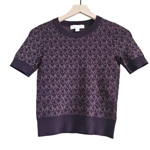 NWOT MICHAEL KORS LOGO JACQUARD SHORT-SLEEVE SWEATER