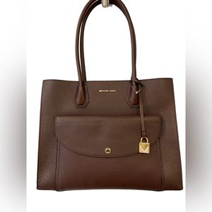 NWOT MICHAEL KORS Mercer Extra-Large Pebbled Brown Leather Shoulder Tote Bag