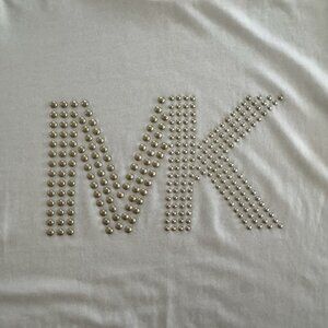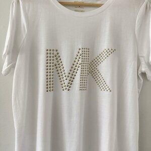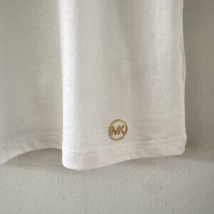NWOT MICHAEL KORS White Short Sleeve Gold Studded MK Logo Jersey T-Shirt Tee