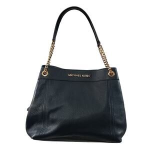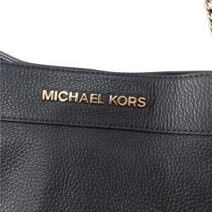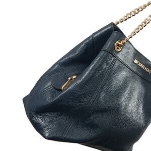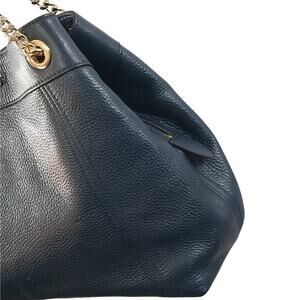 From Michael Kors is this truly gorgeous navy blue bag, purse, hand bag, shoulder bag in pebbled genuine fine leather! Front logo in gold, gold hardware, magnetic closures top! Inside are 3 compartments, 2 main compartments separated by a large zipper compartment! Side zipper pocket in one side! Measures: 11" x 14.5" x 4.5", shoulder straps in leather with gold chain measure: 22" with a 9" drop! A super attractive bag! A gift, never used! ***NEW Without Tags, and Guaranteed Superb by Lily @HauteClub!*