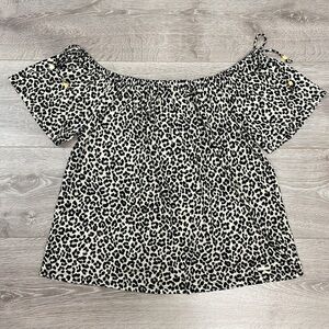 NWOT MICHAEL Michael Kors Short Sleeve Off The Shoulder Leopard Print Blouse L
