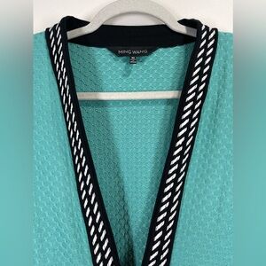 NWOT MING WANG Women’s Turquoise Black and White Knit Cardigan Size Medium
