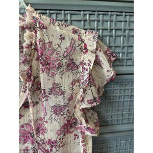 NWOT MISA Basia Siena Pink Paisley Floral Chiffon Flutter Sleeve Top, XS $210 B1
