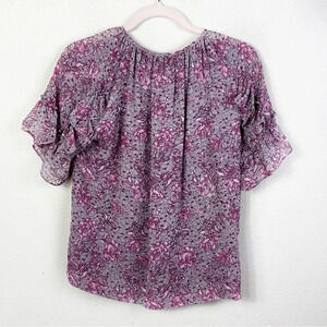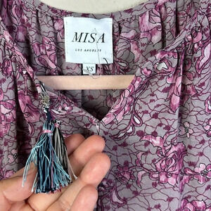 NWOT MISA LA Blouse Floral Ruffle Boho Purple Pink Tassel Top size XS