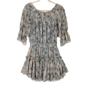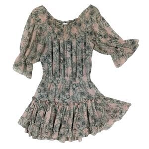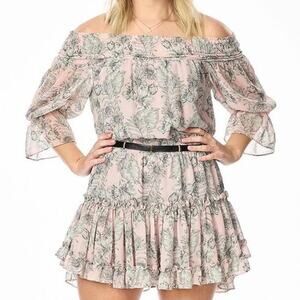 NWOT MISA LOS ANGELES Dress S Pink Pistachio Tropical Ruffle Off-Shoulder“Geroux