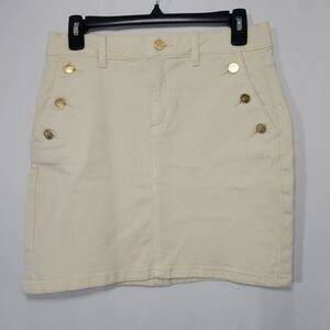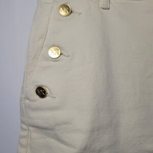 NWOT MK Michael Kors Jean Skirt Nautical Gold Buttons Ecru / Beige Denim 4