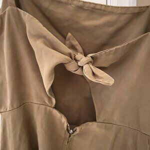 NWOT MNG Limited Edition Khaki Linen-Blend Back Tie Midi Dress Women’s 8