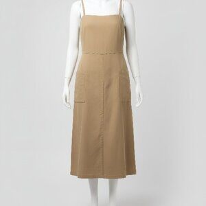 MNG Casual, Khaki Dress, Tan Dress, Beige Dress, Spaghetti Strap, Back Tie, Tie Back, Front Slit, Pockets, Midi Dress, Maxi Dress, Size 8, Summer Dress, Casual Wear, Minimalist, Boho, Bohemian, Timeless, Classic, Effortless, Versatile, Staple, Breezy.