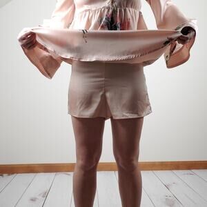 NWOT MNG Mango Floral Bell Sleeve Satin Dress Pink 4