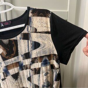 NWOT MODEL FRANCE Graphic Short Sleeve Tunic Top Tee Lightweight, Flowy O/S