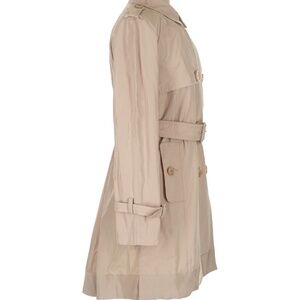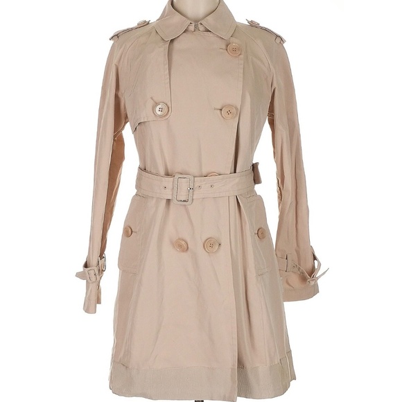 Never been worn, photos are of the actual trench. This is very flattering! Size medium, but I'd say it fits a 6-8 most comfortably!