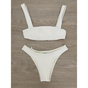 NWOT MONDAY SWIMWEAR Ivory Crinkle Bikini Set Puerto Rico Top Byron Bottom S