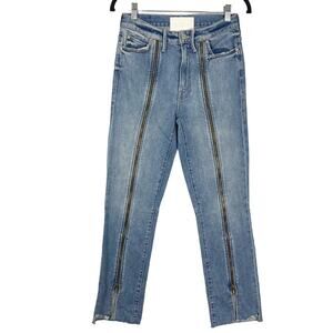 NWOT MOTHER Jeans 26 Blue”High-Waisted Rascal Zip Step Fray”Zip-Details