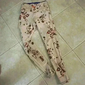 Beautiful compression leggings. Floral on one side, solid blue on the other. Size Med