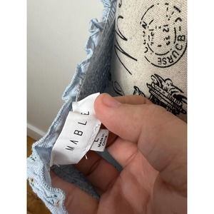 NWOT Mable Light Blue Floral Ruffle hem Wide strap Ruched Crop Top