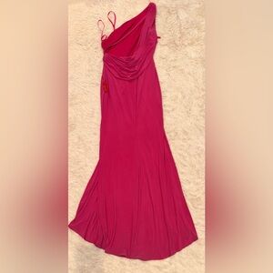 NWOT Mac Duggal Draped Back slit Jersey Gown size 4