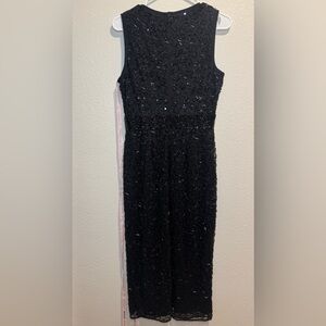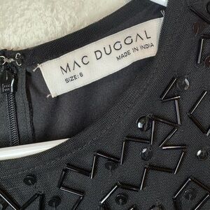 NWOT Mac Duggal Geometric Embellished Beaded Sleeveless A Line Black Dress Size 6 #8210. The return tag is still attached. Hand embellished mesh overlay; 100% polyester lining Fully lined through body