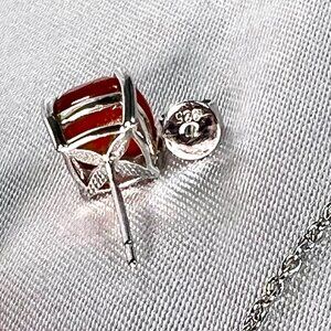 NWOT Macy's Sterling Silver Cushion Cut Red Agate Necklace and Earrings Set