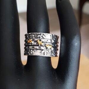 NWOT Wide silver wide band ring with 3 cute little gold bees from Italy.