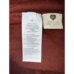 Crafted for comfort and style, the Madewell Lightweight Double V-Neck Red Ribbed Sweater is a versatile addition to any wardrobe. Its classic red hue and simple solid pattern make it a timeless piece, while the lightweight knit fabric ensures it's perfect for layering or wearing on its own during cooler days. The sweater features a flattering V-neck design and long sleeves, with a blend of cotton, viscose, and polyamide providing both softness and durability. Available in size medium and designed to fit a range of body types, it's important to hand wash this garment to maintain its quality.