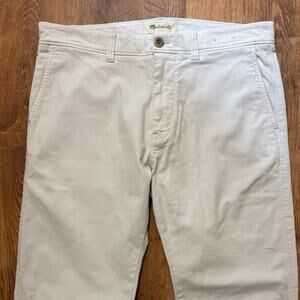 17 inch waist laying flat. 11 inch rise. 30 inch inseam. A cool take on a classic, these chinos have a fit based on our slim jeans and a fabric straight from heaven (OK, fine, the supersoft and stretchy material actually comes from the Kurabo mill in Japan). Fitted through the hip and thigh with a straight leg, our take on a classic. Leg opening: 14 1/2". 91% cotton/6% poly/3% elastane. Zip fly. Machine wash. Very light grey. Retails for $98. New without tags. Ship Same/Next Day, Professional Seller. Offers Welcome. Bundle & Save! Summer. Preppy. Cottage. Minimalist. Casual. Euro summer. Minimalist. Preppy. Casual. Old Money. Quiet Luxury. Winter. Fall Fashion. Wardrobe Staple. Neutral. Classic. Office. Workwear.