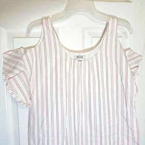 NWOT Madewell Rose Stripe White Summer Dress Open Shoulder Ruffle Sleeve Small
