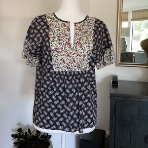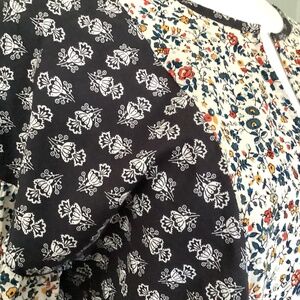This NWOT Madewell floral mix top is in excellent new condition from a smoke, pet and fragrance free clean home. I recently sold a second home and am consolidating wardrobes and this one must go. It is a nice navy and white and multi color floral mix patterned top good for fall spring and summer seasons. Machine washable of a cotton viscose blend. Measurements in photos.