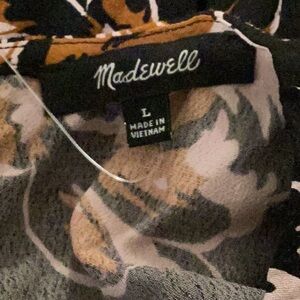 NWOT Madewell Size L Cuffed-Sleeve Shirred Black Duskblossom Floral Blouse