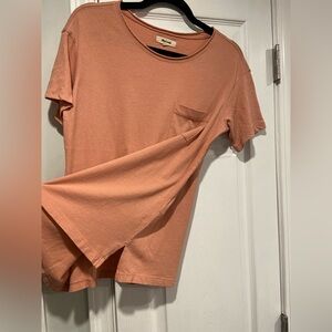 NWOT Madewell Size XS Pink Clay Short Sleeve Crew Split Hem Pocket Tee Shirt