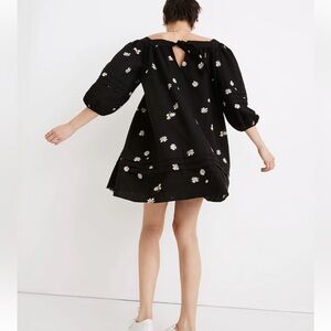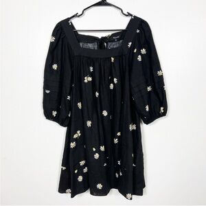NWOT Madewell Square-Neck Pleat-Detail Black Mini Dress in Lazy Daisies XXS