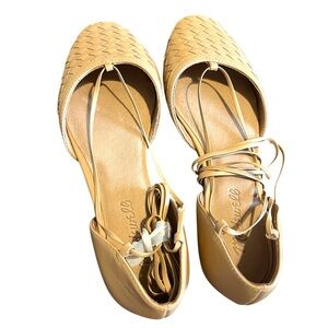 NWOT Madewell The Celina Lace-Up Flat in Woven Leather in Color Earthen Sand 7