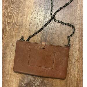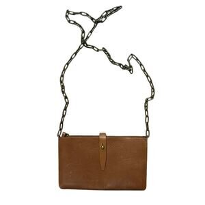bag has a chain crossbody strap that was custom made to sync up with our signature paperclip necklace. A wallet turned going-out necessity, it has an expandable accordion shape, a zip-close compartment with a credit card slot and a slide pocket in front for your ID (it all closes with a secure collar stud).