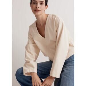 NWOT Madewell Waffle-Knit Relaxed V-Neck Top Ivory Cream Small