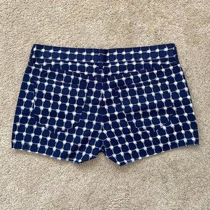 NWOT indigo blue and white printed cutoff cotton lightweight stretchy denim shorts.