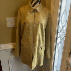 NWOT Madison yellow with white polka dots soft polyester Long jacket Size XL silver tone zippers . See all pictures any questions please message.