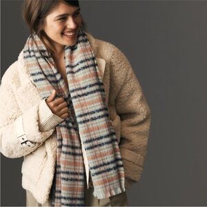 NWOT Maeve by Anthropologie Cream Tan Navy Orange & Pink Plaid Blanket Scarf