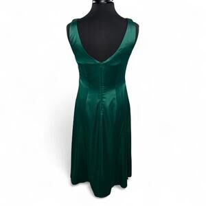 NWOT Maggy London Green Satin Ruched Midi Dress US 8 | Wedding Guest Cocktail