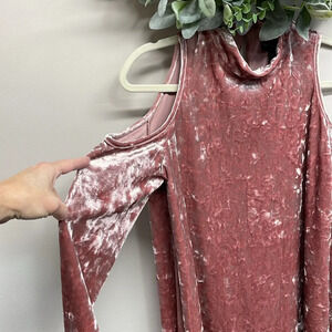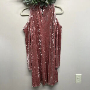 NWOT Maggy London Pink Mauve Blush Crush Velvet High Neck Cold Shoulder Dress